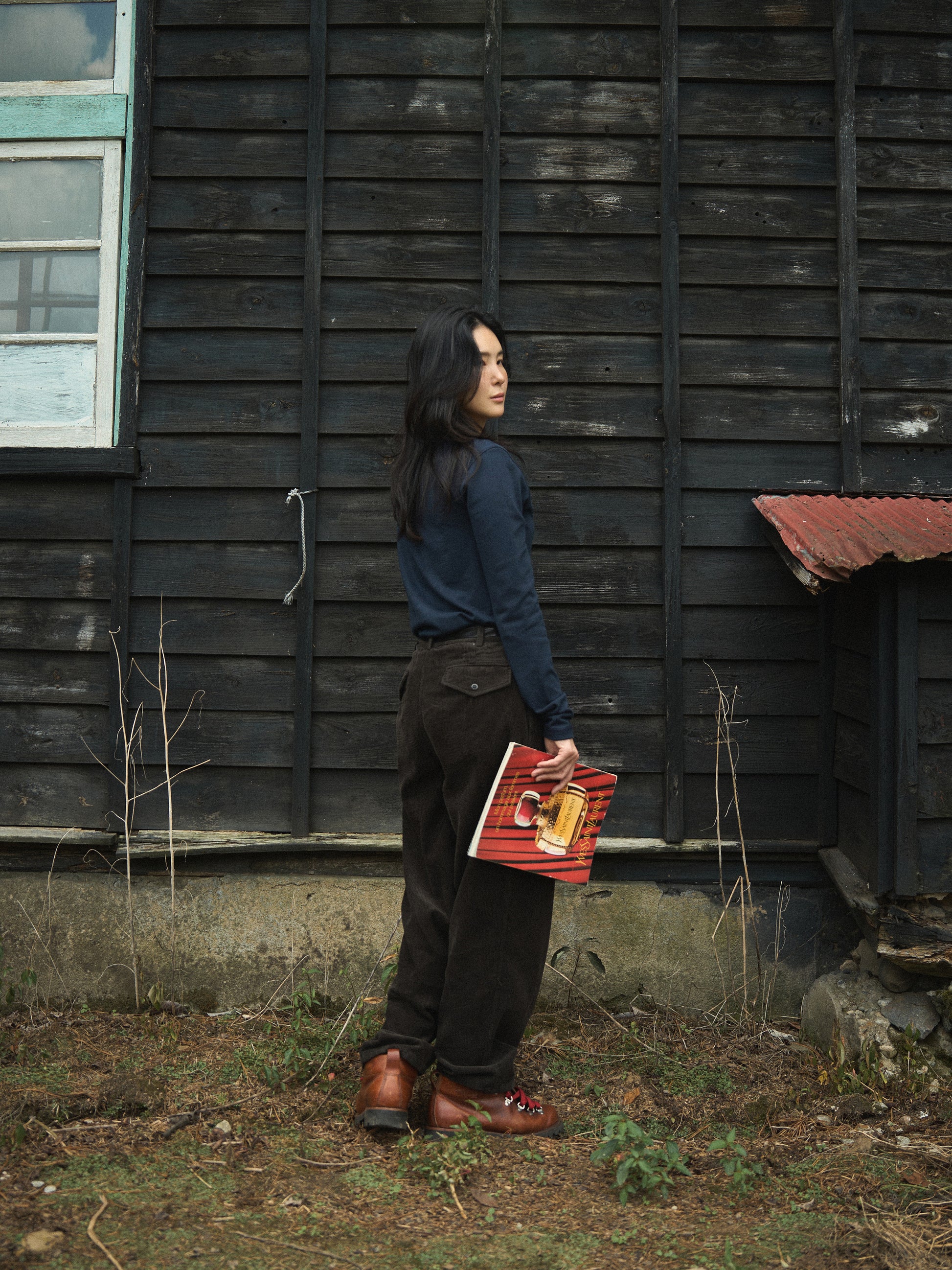 涼しい秋にはクラシックなチェックシャツやベーシックなTシャツと自然に馴染み、冷たい風が吹く冬にはヴィンテージ感のある編み地のルーズなセーターと合わせることで、より温かみと奥行きのある雰囲気を楽しめます。長く様々なスタイルに溶け込み、深みのあるスタイリングの基盤となる一本です。