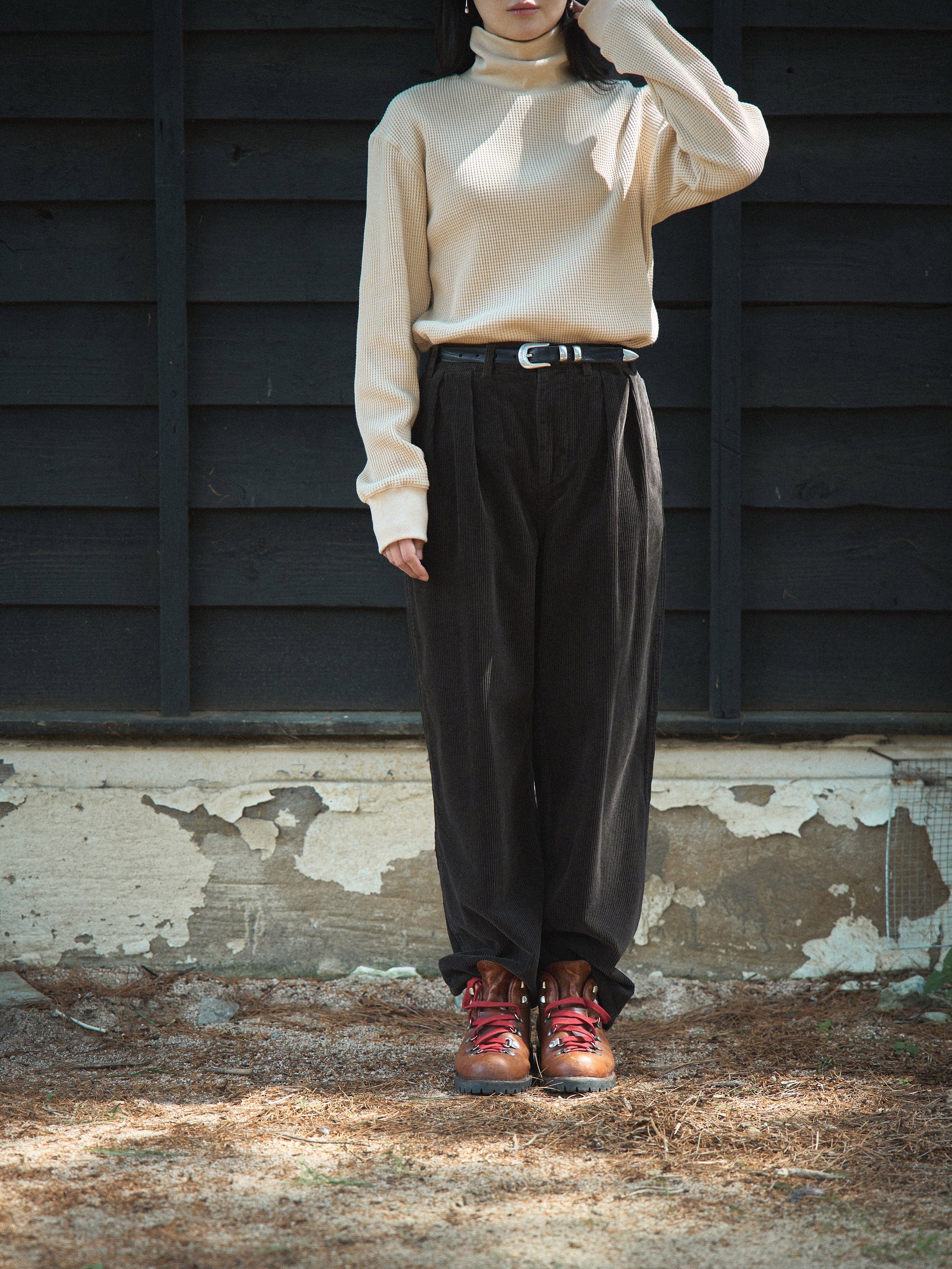 武骨さの中に洗練されたシルエットが印象的な GRANT CORDUROY PANTS。90年代のクラシックテーラリングから着想を得て、定型的ではないシルエットと繊細なディテールによって、Outfitters ならではのヴィンテージ感覚を込めて完成させました。