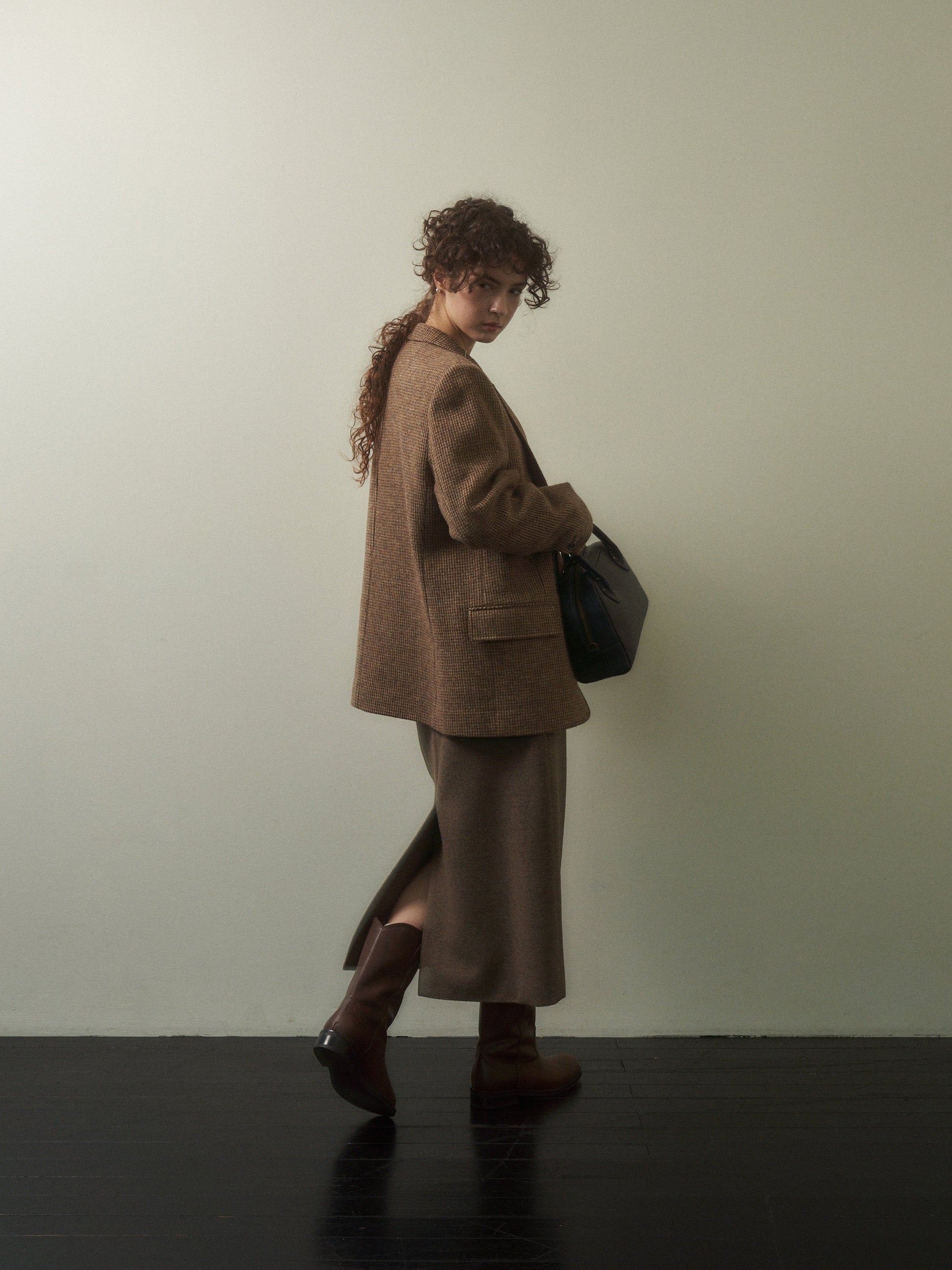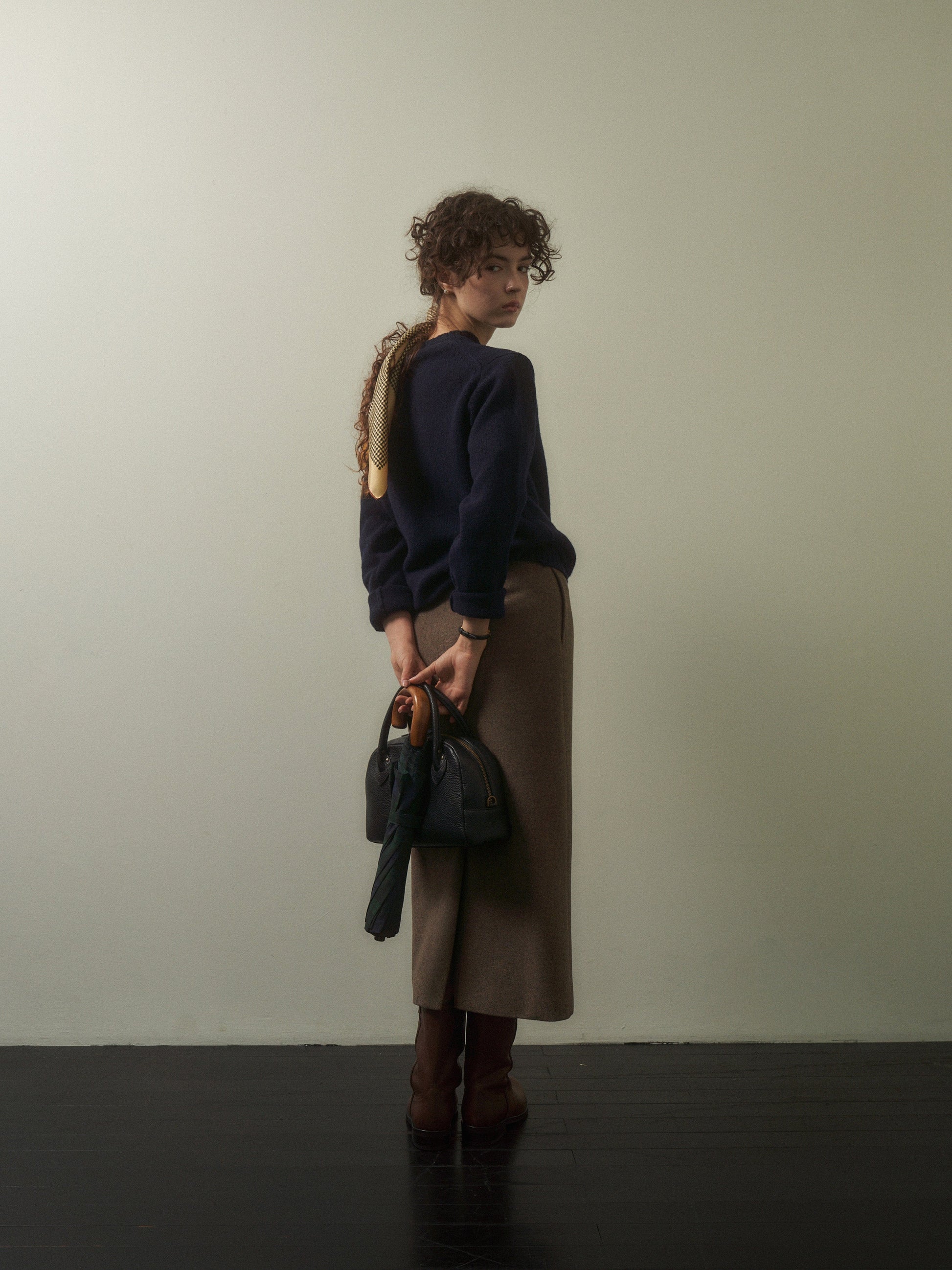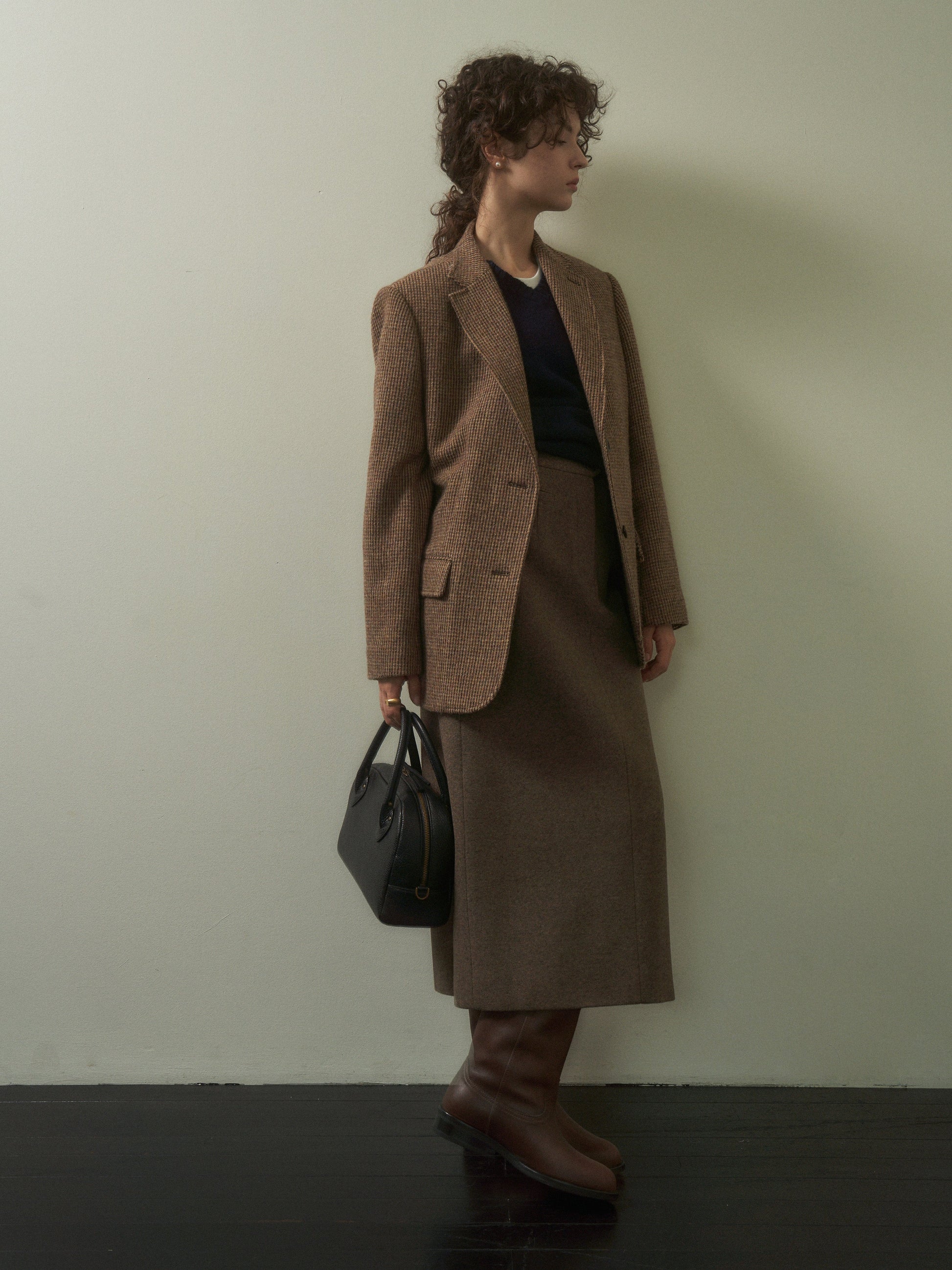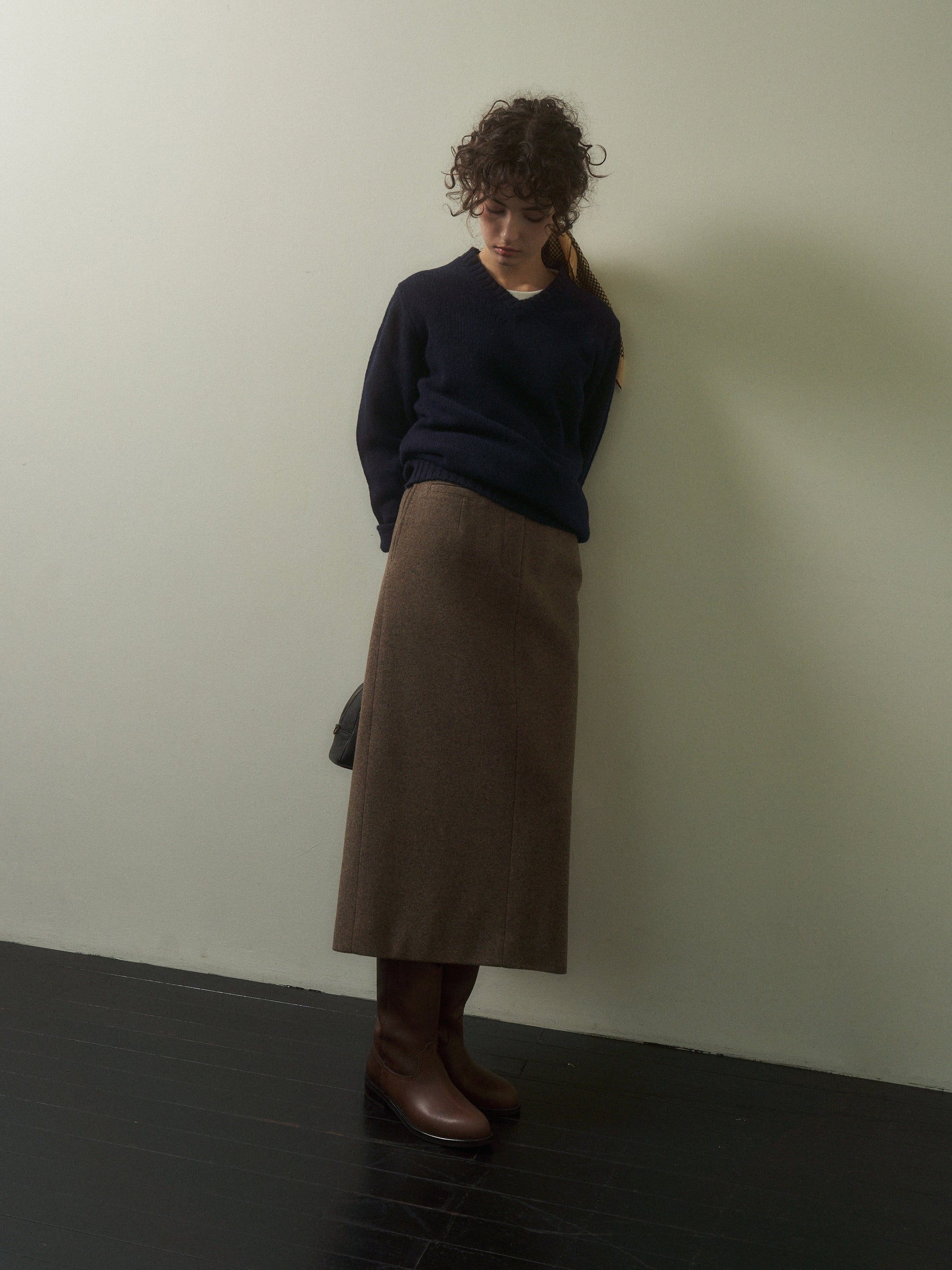 「Evening Wool Skirt」は、冬のワードローブに静かなエレガンスと温もりを添える、タイムレスな一着でございます。1990年代のミニマルなシルエットに着想を得ており、ウエストからヒップにかけてすっきりと沿うストレートラインが、上品で美しいフィット感を実現いたします。