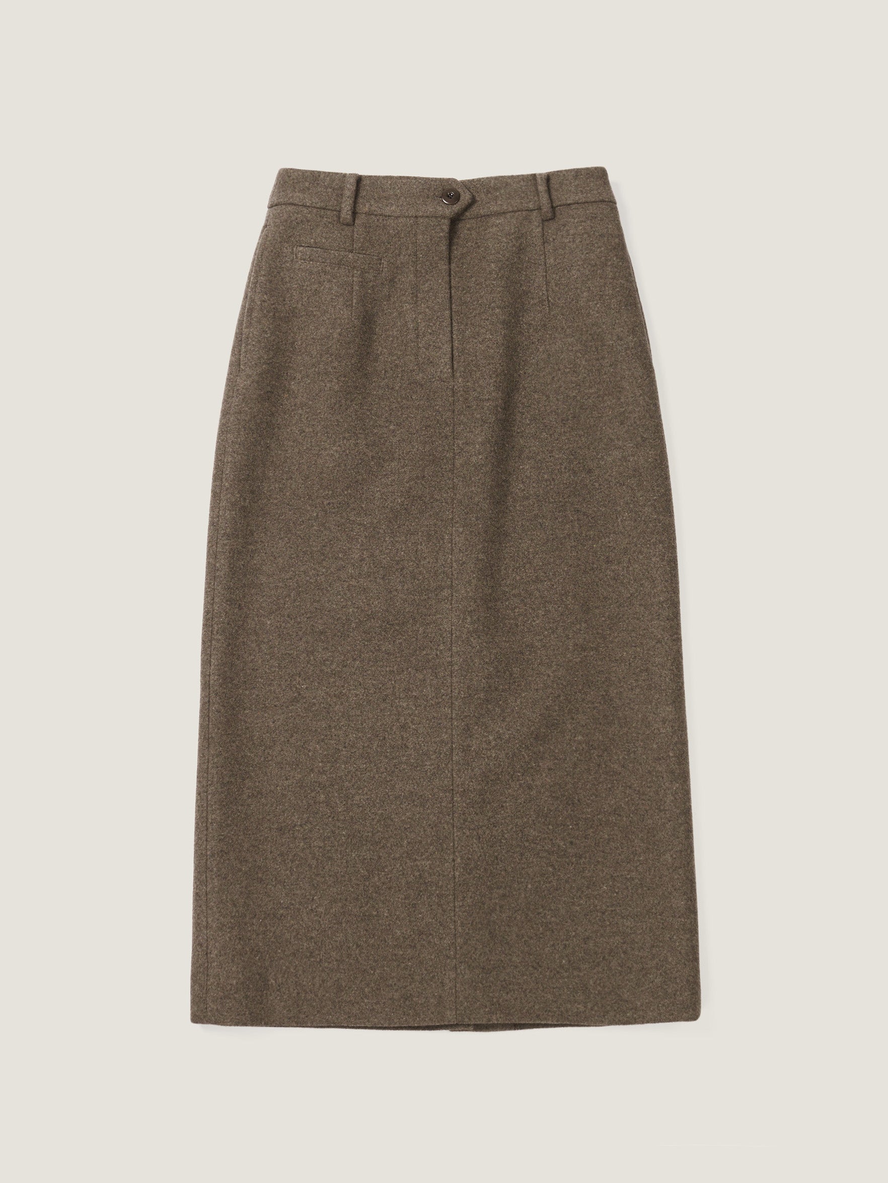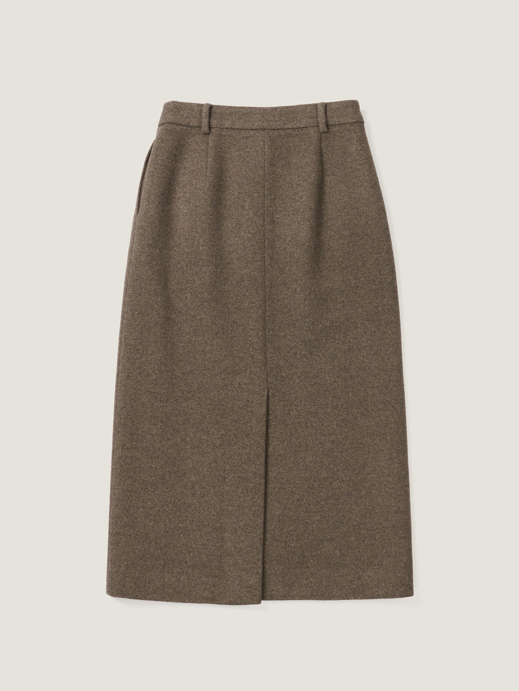 テーラード仕立てのウエストバンドやフロントのミニポケット、控えめに配されたサイドポケットなど、さりげないディテールがスカートの洗練された印象を際立たせています。程よい厚みとやわらかさを兼ね備えたウール混素材を採用し、優れた伸縮性と快適な穿き心地を提供。マイナス気温の寒さの中でも体をやさしく包み込み、暖かさを保ちます。