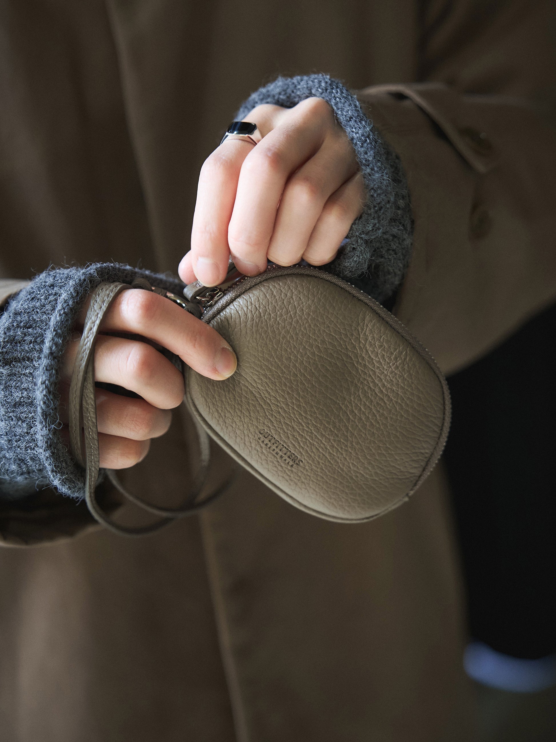 十分な収容力があり、複数のカードや紙幣、車のキーなど、さまざまな小物を収納できるため、日常使いにも大変便利です。シルバーニッケルのジッパーに加え、取り外し可能なOリングとレザーストラップのディテールは、機能的でありながらスタイリッシュなアクセントに。ストラップは首から下げたり、バッグに巻き付けたりと、お好みに合わせて多彩なアレンジが可能です。