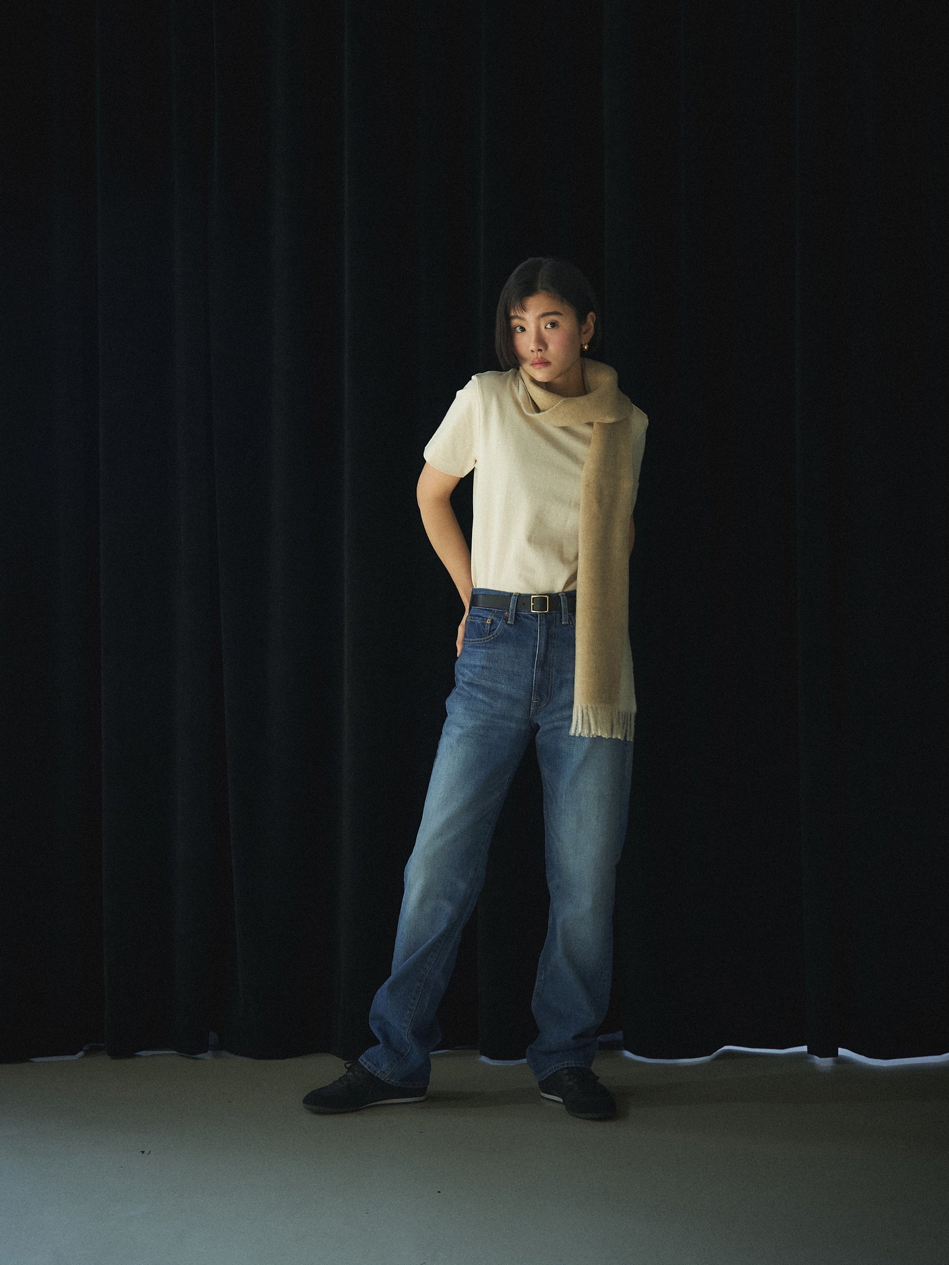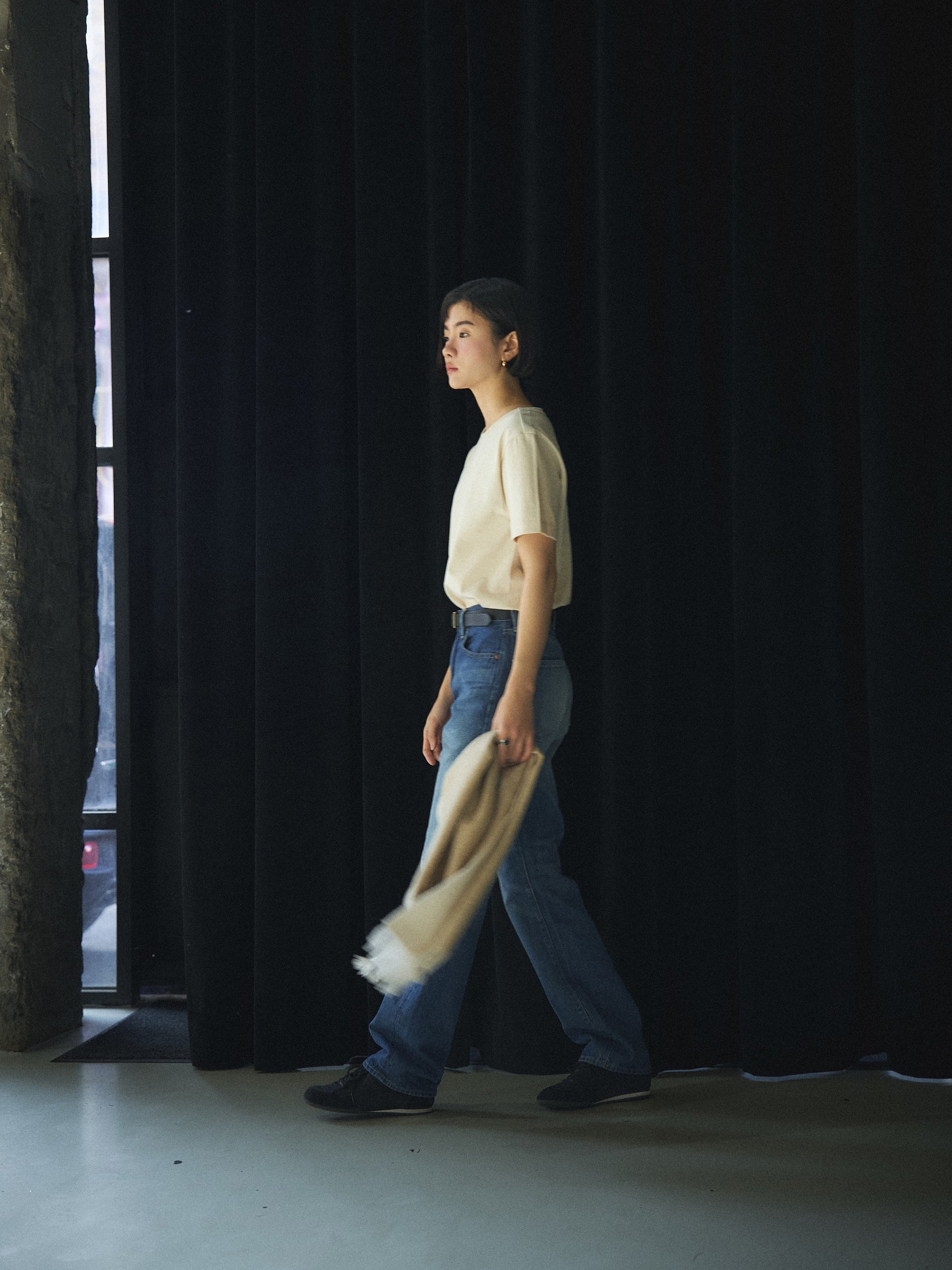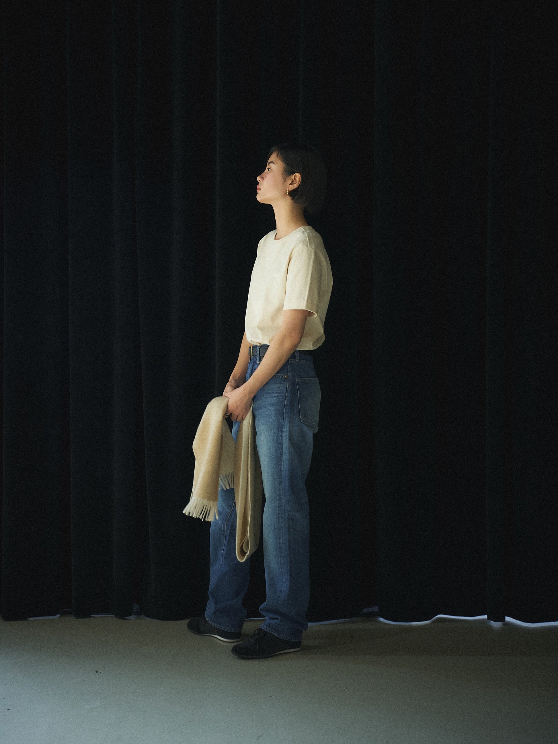 時代に流されないクラシックなシルエットと、穿くほどに自分だけの表情へと育つ質感を思い描きながら制作した本作は、その感覚のまま、身に着けた瞬間に心地よい高揚感を与え、どんなアイテムと合わせても奥行きのあるスタイルに仕上がります。