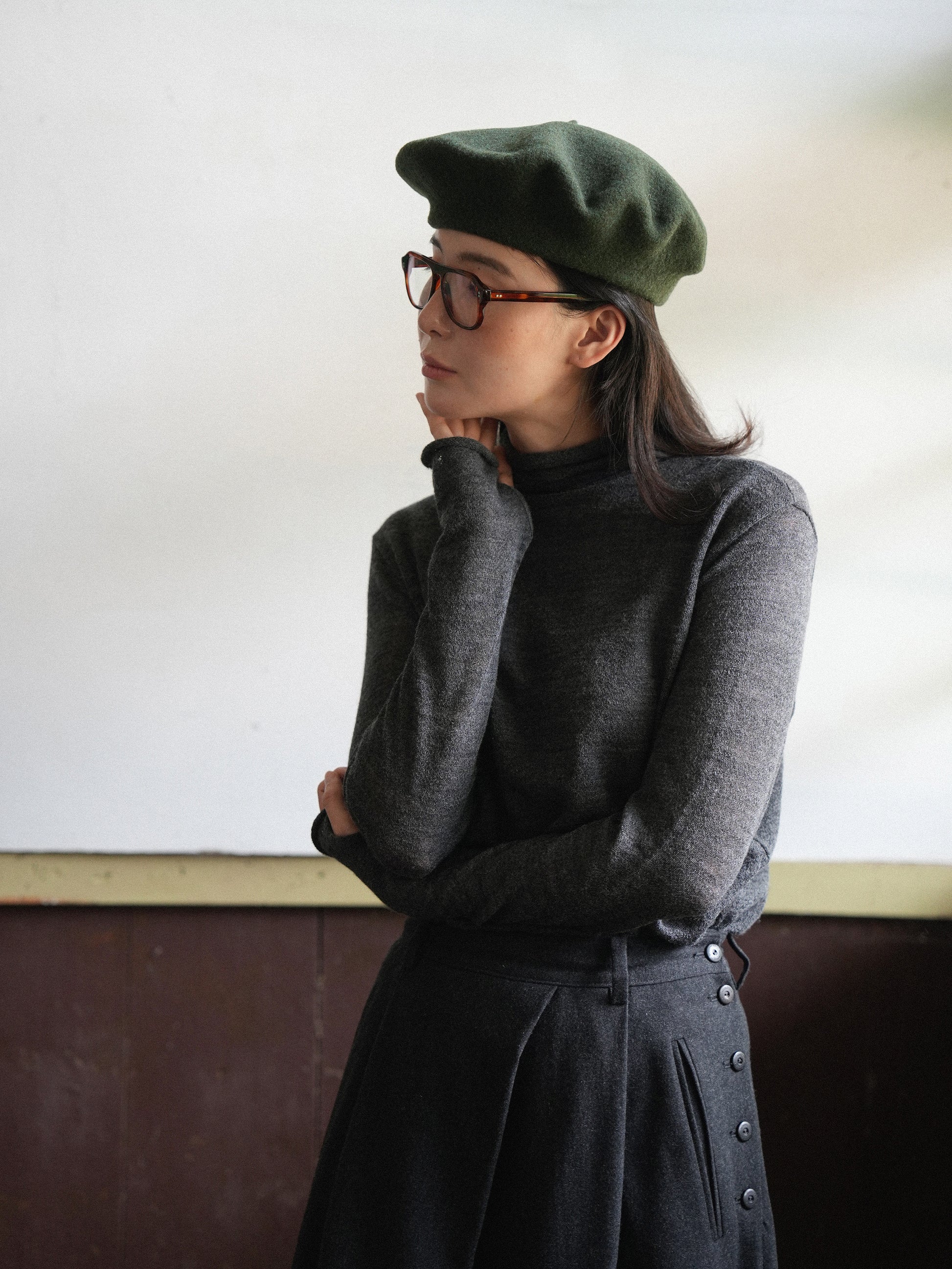 RUSTLE WOOL TURTLE TOP [ Blend Charcoal ]