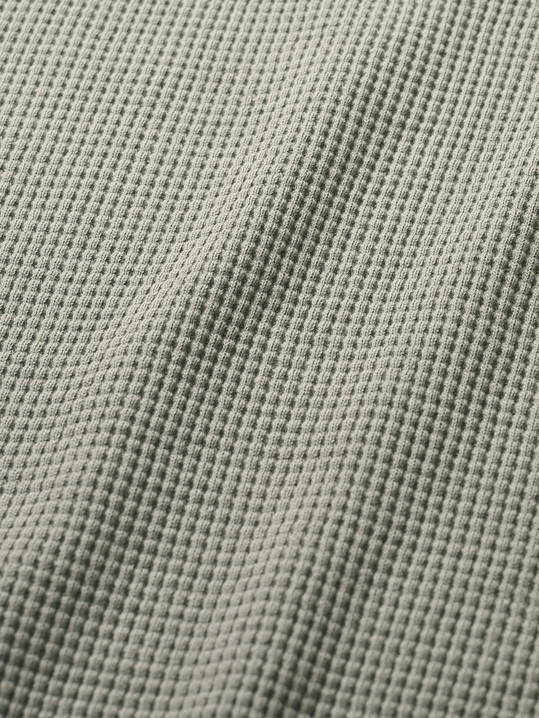 クラシックなクルーネックデザインとワッフル組織により、保温性と動きやすさを両立。単体での着用はもちろん、レイヤードスタイルにも最適です。