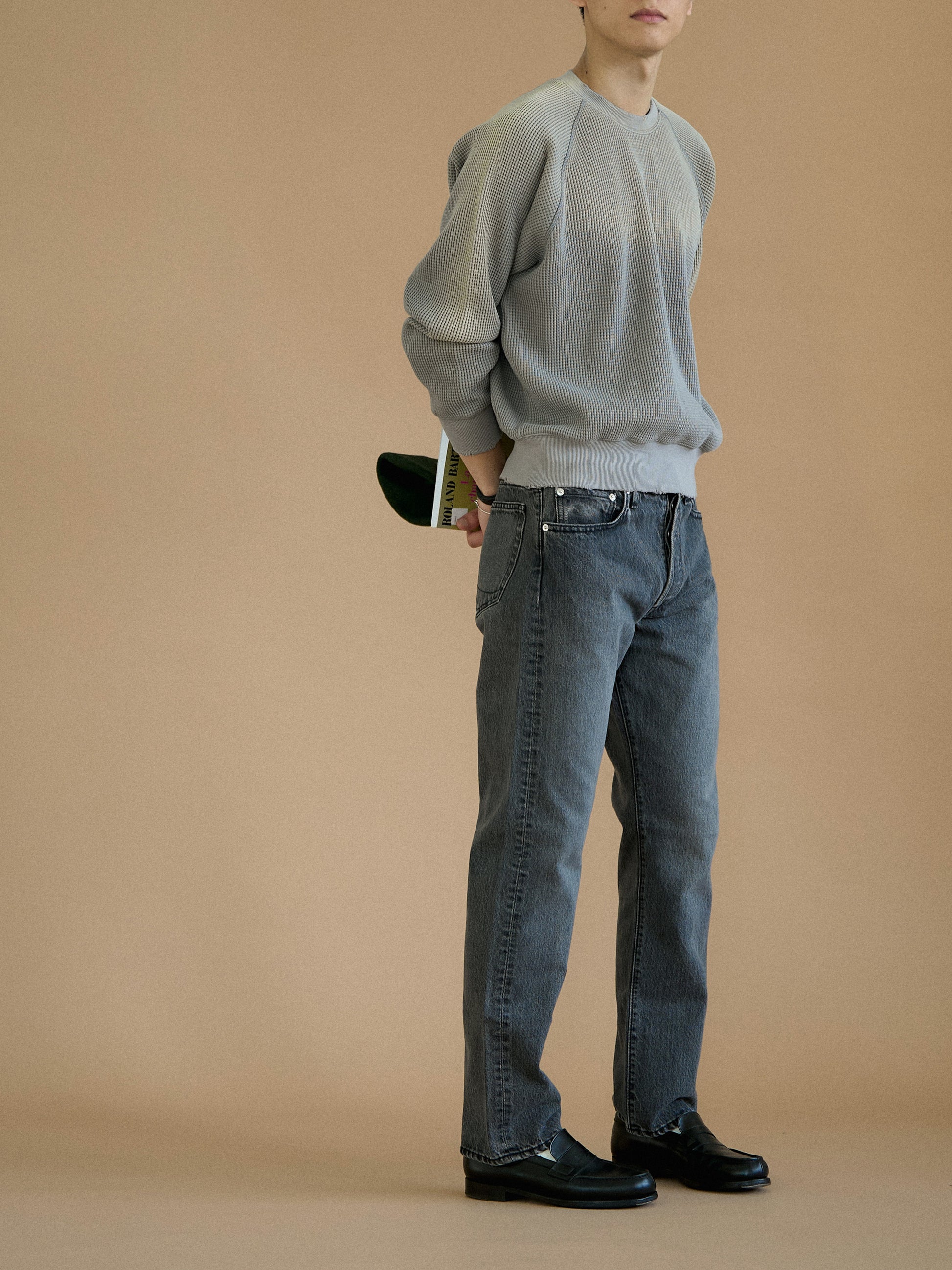 まるで長年着込んだヴィンテージスウェットの経年変化を再現した Waffle Crewneck Sweatshirt は、デイリーのカジュアルスタイルにさりげないアクセントを添える一着です。
